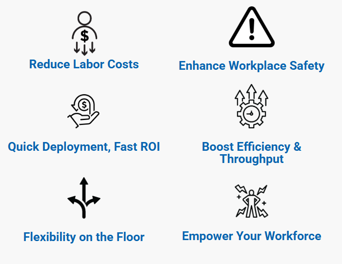 Cobots are transforming industries by addressing key operational challenges. From rising labor costs to increasing safety concerns, they help businesses improve productivity, enhance workplace safety, and streamline operations—enabling you to accomplish more with fewer resources.